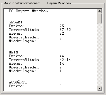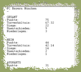 Mannschaftsstatistiken beispielhafte Textdatei herunterladen: Mannschaftsstatistiken des FC Bayern München in der Saison 2005/2006 [4 kb] |