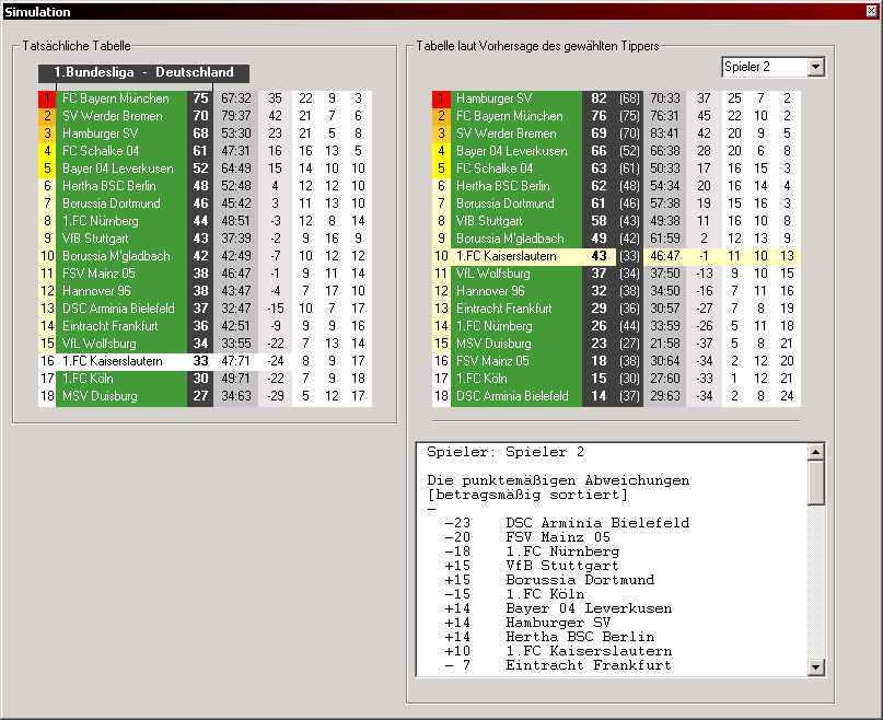 | Simulation der Ligatabelle bei Eintritt der Tipps |
