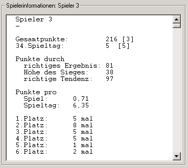 Spielerstatistiken beispielhafte Textdatei herunterladen: Statistiken eines Tippers in der Saison 2005/2006 [18 kb] |